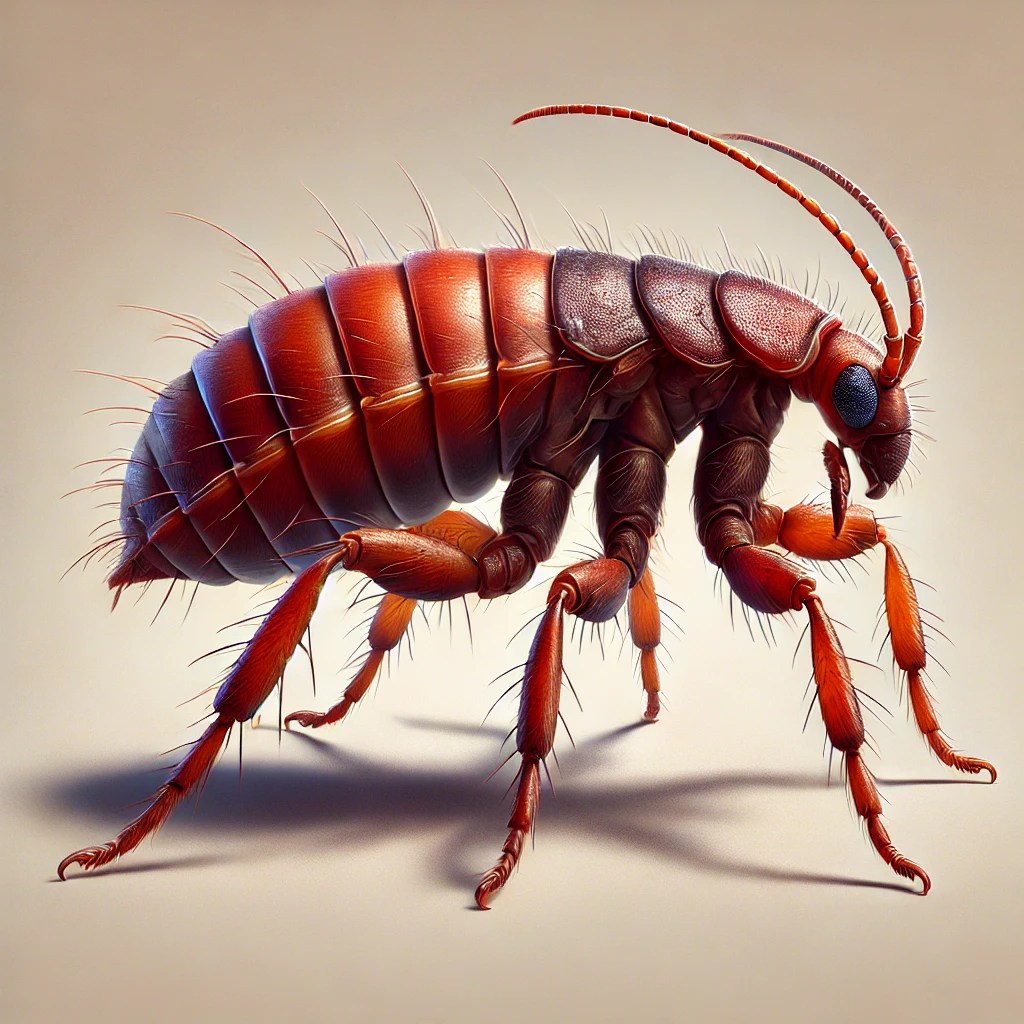 Fleas are tiny, fast-moving parasites that feed on the blood of animals and humans, often causing persistent itching and irritation. Their powerful legs allow them to jump long distances, making them highly mobile and difficult to catch. While commonly associated with pets, fleas can infest homes even without animals, hitching rides on clothing or being brought in by rodents or wildlife. Their eggs are especially troublesome—laid in carpets, furniture, and bedding, they can remain dormant for weeks or even months, hatching when conditions are right. This delayed emergence makes flea infestations notoriously difficult to eliminate. Beyond their itchy bites, fleas can transmit diseases and cause allergic reactions, making prompt treatment essential to breaking their life cycle.